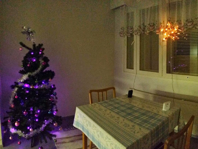 Hei vain. Viimein toimii netti. Pätkinyt koko päivän niin, etten ole saanut tätä julkaistua. Tänään syttyi valot kuuseen ja tähteen.